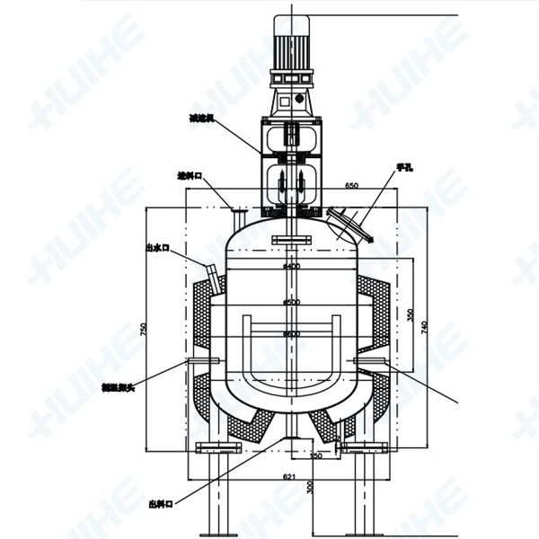 該反應(yīng)設(shè)備主要由鍋體、鍋蓋、攪拌器、夾套、支承及傳動(dòng)裝置、軸封裝置等組成(可按工藝需要采用帶保溫結(jié)構(gòu)),根據(jù)物料生產(chǎn)要求和用戶所需而確定壓力、溫度、材質(zhì)、攪拌裝置類 型、轉(zhuǎn)速、密封結(jié)構(gòu)、加熱方式等進(jìn)行設(shè)計(jì)制造。