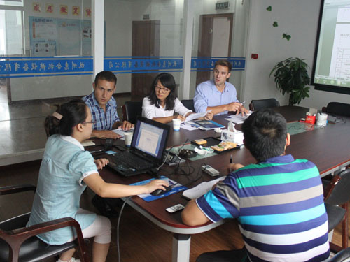2014年9月11日,美國(guó)客戶因業(yè)務(wù)擴(kuò)展需要訂制全套爆爆蛋生產(chǎn)線設(shè)備,來(lái)我公司與銷售人員和工程師進(jìn)行具體細(xì)節(jié)的洽談。
