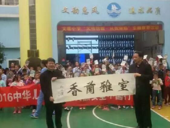 《新魏書法》、《漢字發(fā)明書寫經(jīng)緯十字定位法》的創(chuàng)始人祁繼慶老師為兒童食品安全題寫的“厚德載物”“室雅蘭新”“上善若水”三副新魏體書法作品由兒童食品安全負(fù)責(zé)人解冰捐贈(zèng)給了文惠小學(xué)和柳州金沙投資管理有限公司。