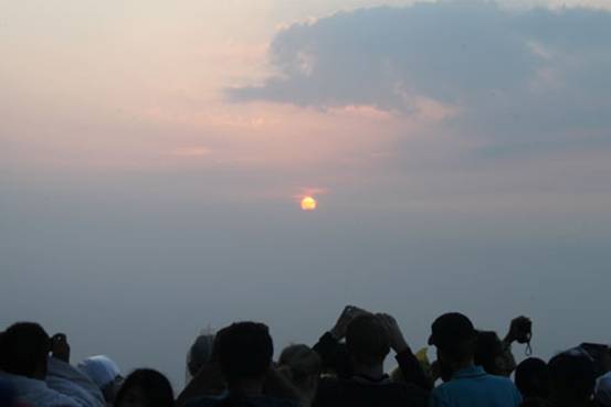 凌晨4點起來登上光明看日出,在很多人放棄之時太陽突然從云霧中緩緩升起,這也給我們很大的啟示:不要輕言放棄,要堅持到底!